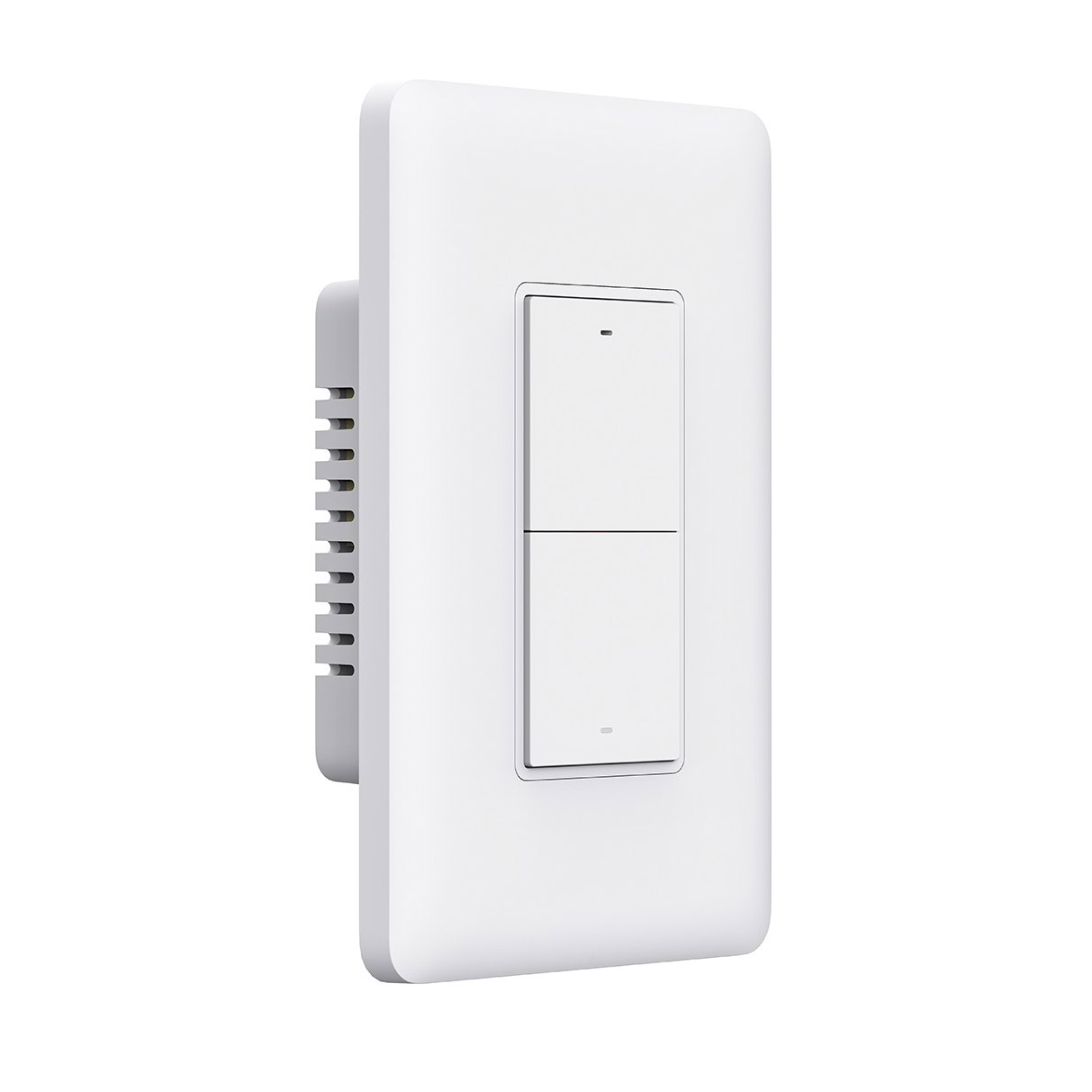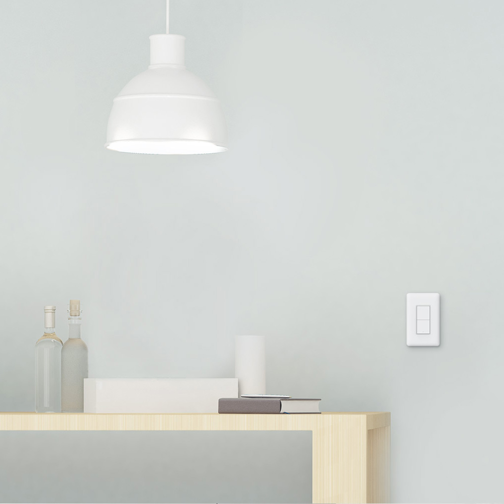 Bề ngoài của công tắc là màu trắng, các cạnh bo viền tinh tế, thiết kế hơi nhám để chống bám bụi bẩn và giữ cho thiết bị luôn bền màu trong quá trình sử dụng. Phần công tắc nổi phía trên sẽ đi kèm với một đèn LED báo hiệu trạng thái hoạt động.